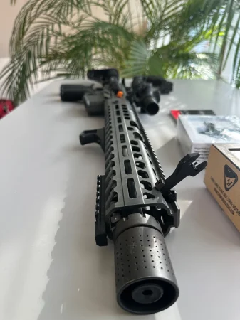 Karabinek w bardzo dobrym stanie, mało strzelany – poniżej 1000 sztuk amunicji. Egzemplarz zadbany i doposażony w wysokiej klasy akcesoria – gotowa konfiguracja do strzelania sportowego / dynamicznego.