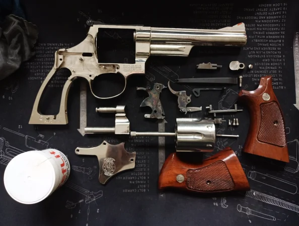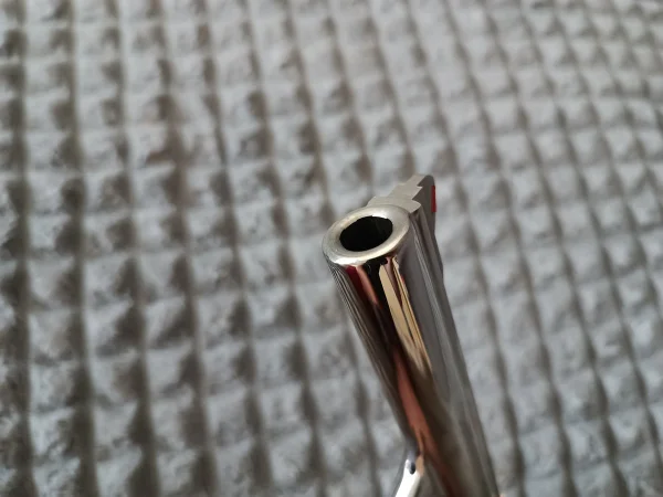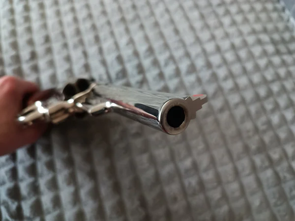 Rewolwer w bardzo dobry stanie wizualnym i technicznym. Gwint ostry i wyraźny, korona idealna, stożki niewypalone, timing idealny, powłoka w stanie bardzo dobrym. Zdjęcie z elementami po rozłożeniu wykonane po pierwszym czyszczeniu po zakupie, pozostałe już "współczesne".