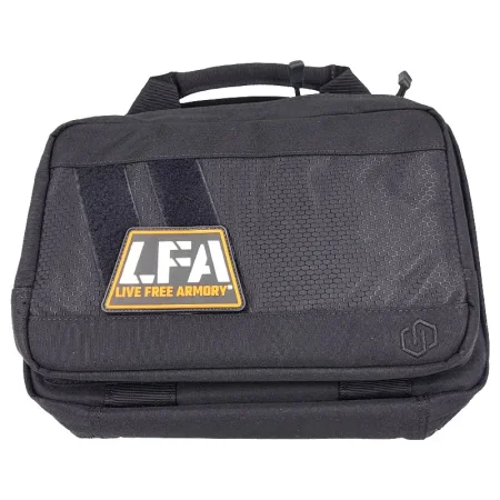 Wyprodukowany przez amerykańską firmę LFA (Live Free Armory) pistolet AMPX, z lufą o długości 3,9", w kolorze czarnym, zasilany amunicją 9 mm.