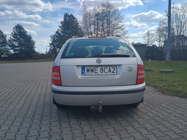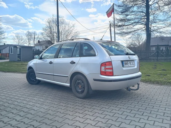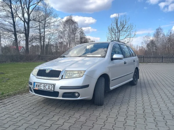 Skodę Fabię kombi z 2007 roku, silnik 1.4. Instalacja LPG, zbiornik ważny do 2008 roku, hak. Gaz wymaga serwisu i wymiany filtrów. Podwozie w dobrym stanie, minimalny nalot korozji w kilku punktach. Podwozie było konserwowane kilka lat temu. Rozrząd zmieniany w jakieś 35 tys km temu. Dwa komplety kół.