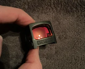 Punkt celowania zielony, delikatne ryski na tylnej szybie niewidoczne. Z przodu mała kropka/ryska która nie wpływa na celowanie (widać na zdjęciu). Przebieg jest niewielki, dodatkowo mogę odsprzedać również płytkę BME dedykowaną do Glocka w systemie MOS. W razie dodatkowych pytań proszę o kontakt.