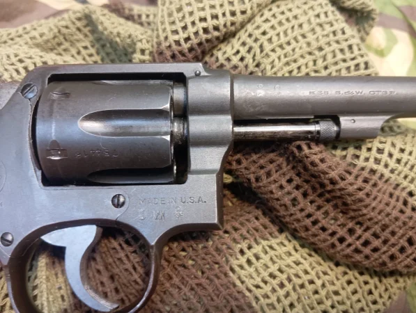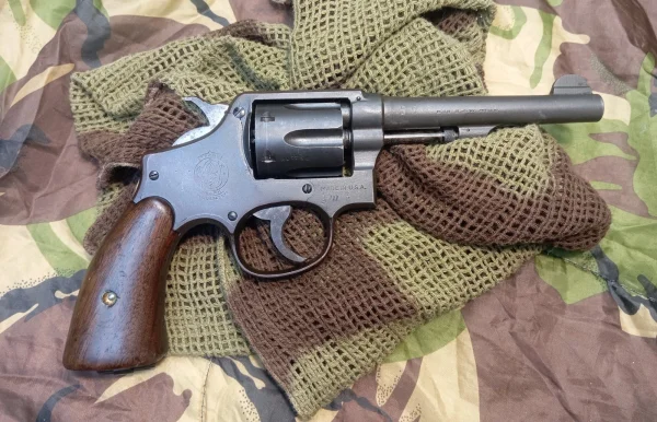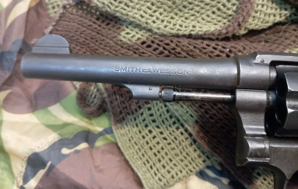 Rewolwer S&W Victory z 1943 roku, wyprodukowany w USA dla potrzeby rządu brytyjskiego w ramach pożyczki lend lease. Stan bardzo dobry.