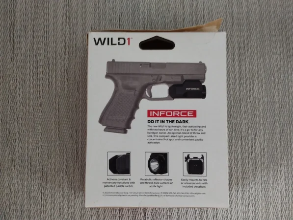 Sprzedam oryginalną latarkę INFORCE WILD1 przeznaczoną do montażu na pistoletach. Latarka rozpakowana, przymierzana lecz nie używana. Brak uszkodzeń, śladów użytkowania itp. Na latarce zamontowana jest szyna do GLOCK-a.