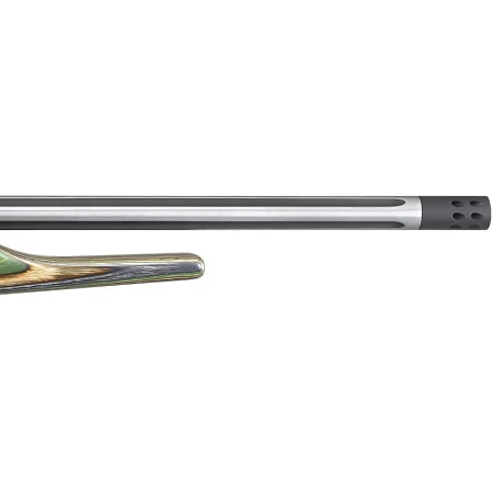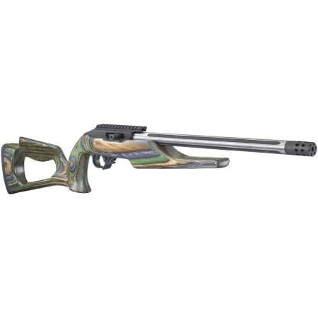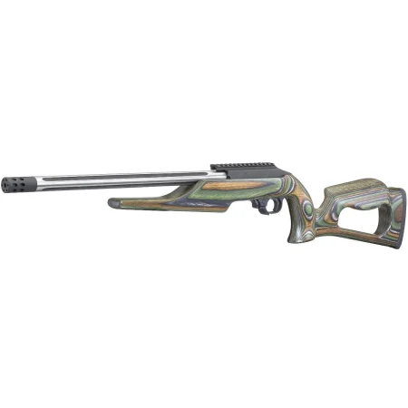 Pochodzący zza oceanu karabinek samopowtarzalny bocznego zapłonu Ruger 10/22 Competition w oryginalnym kolorze camo. Model ten posiada swobodną lufę pływającą (Free Float), matchową, a w dodatku karbowaną lufę. Karbowanie lufy wykonywane jest celem obniżenia masy i lepszego odprowadzania ciepła. Lufa - kuta na zimno, długa na 16,12" zakończona jest gwintem 1/2"-28. Na gwincie fabrycznie zamontowany jest hamulec wylotowy.