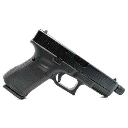 Kompaktowy pistolet Glock 19 tym razem w wersji z gwintem M13,5x1, który fabrycznie zakryty jest nakrętką. Gwint pozwala na montaż urządzenia wylotowego oraz nadaje bardziej taktycznego wyglądu :). Znajduje się on na końcu lufy, długiej na 4,72" Marksman Barrel, która zapewnia jeszcze lepszą celność i powtarzalność. Lufa przystosowana jest do amunicji 9x19 mm, a zasilana jest z magazynka o pojemności 15 sztuk amunicji. W 5 generacji znajdziemy zamek z nacięciami zarówno z przodu jak i z tyłu - wersja FS (Front Serrations).