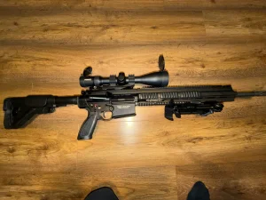 Nowy karabin HK MR308 A3-28. Karabin kupiony ok. 3 lata temu i od tej pory stoi w szafie i nigdy nie był użyty/strzelany. Nie posiada śladów użytkowania