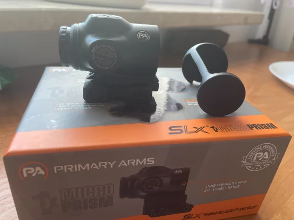 Cześć, na sprzedaż celownik pryzmatyczny + pełen komplet od producenta. Kupiony 02.05.2025. Używałem go dość krótko bo jednak wolę kolimator. Dożywotnia gwarancja producenta Primary Arms.