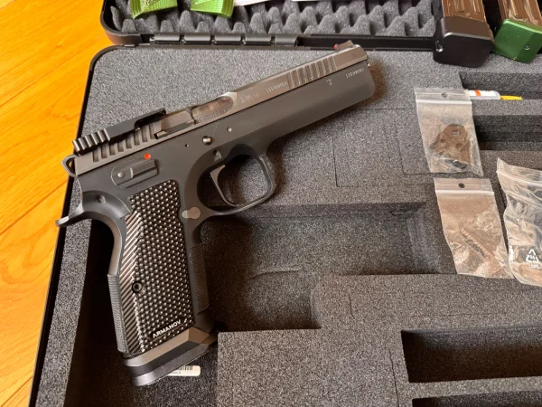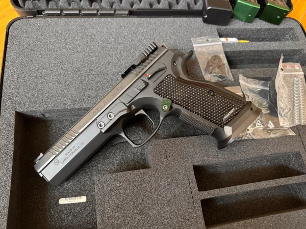 Pistolet którego na naszym rynku raczej nie trzeba przedstawiać. Typowy race gun pod zawody dynamiczne. Nie jestem w stanie podać dokładnego przebiegu bo tego nie liczę, ale pistolet mam nieco ponad 2 lata i jego całkowity przebieg to pewnie coś pomiędzy 5 a 7 tysięcy strzałów.